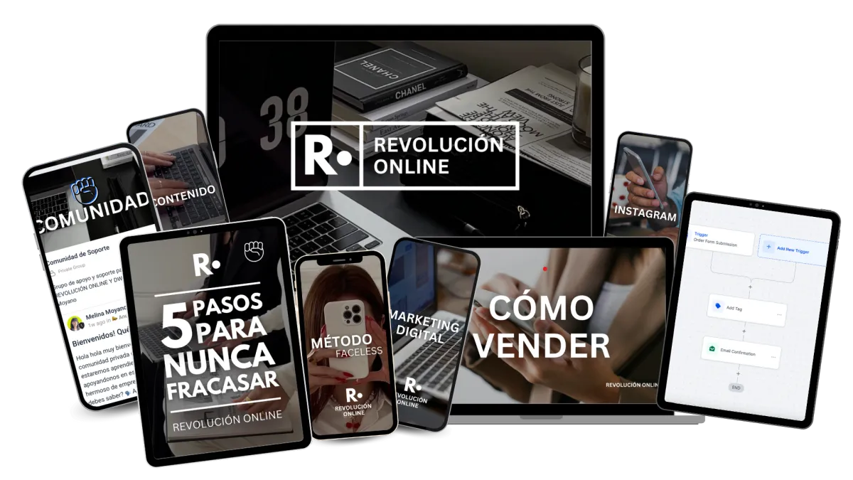 REVOLUCIÓN ONLINE es ideal para principiantes y personas sin experiencia en el marketing digital, porque no solo te enseña todo para comenzar desde 0 sino que es un negocio online hecho para tí, desde un embudo de ventas, productos digitales para vender y dejarte el 100% de las ganancias, sus automatizaciones, secuencias de email, y más!